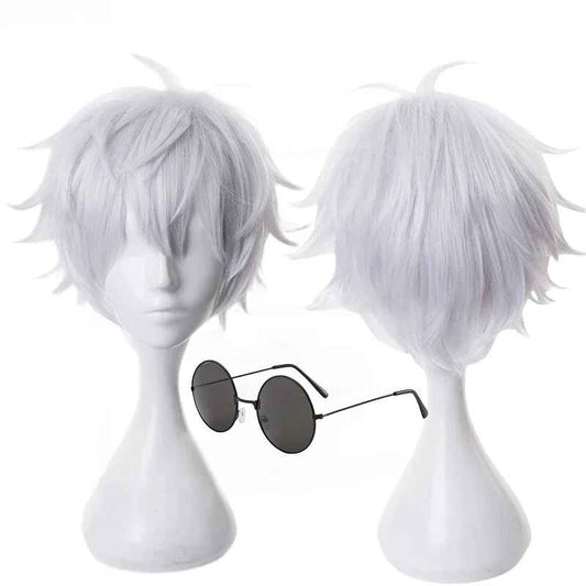 Satoru Gojo Cosplay Wig – Jujutsu Kaisen Short White Synthetic Hair (Heat Resistant)